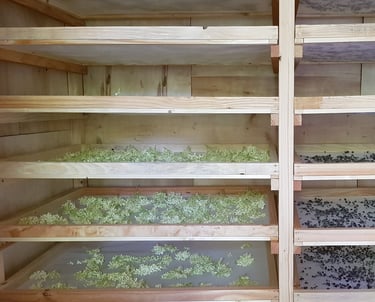 Toutes les opérations sont réalisées à la main, ce qui garantit une qualité optimale du produit fini, ce que vous verrez, je l'espère, à la lumière qui émane de plantes parfaitement séchées et conservées !