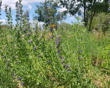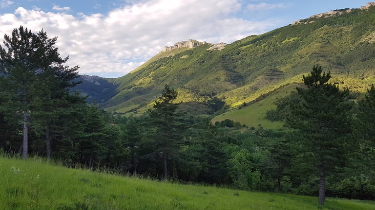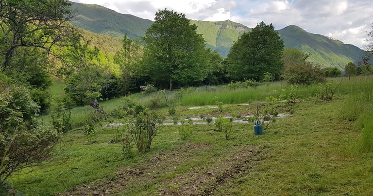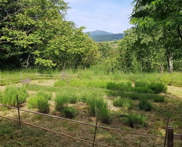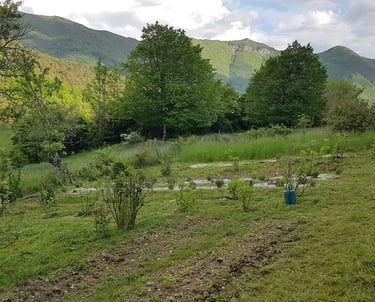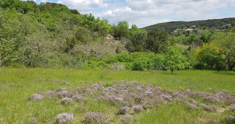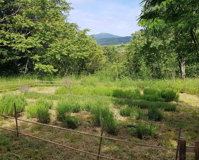 J'ai plusieurs lieux de production et de cueillette en Ardèche du sud, à Lachapelle-sous-Aubenas, mais aussi à Lagorce. Récemment j'ai décidé de remettre en culture une parcelle familiale dans le Vercors dromois, située à 800 m d'altitude sur la commune d'Omblèze, afin d'y cultiver quelques plantes dont le climat sec du sud-Ardèche ne permet pas le plein épanouissement. Ce terrain est aussi une opportunité de cultiver de la lavande vraie, et de faire quelques cueillettes sauvages aux alentours dans un cadre d'une qualité environnementale exceptionnelle.