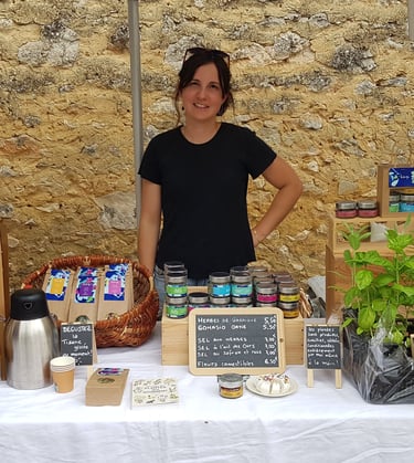 Je m'appelle Agathe, je suis productrice de plantes aromatiques depuis juin 2022. Après l’obtention de mon diplôme d’ingénieur agronome il y a 10 ans, j’ai travaillé dans l’accompagnement des exploitants agricoles au sein de diverses structures. J’ai eu envie de quitter le bureau pour la garrigue et le séchoir et développer mon propre projet autour des plantes. Je vous propose des tisanes et des condiments réalisés à partir de plantes cultivées dans mes jardins et d'autres en cueillette sauvages. J'espère que vous prendrez autant de plaisir à la dégustation de mes tisanes et condiments que j'en ai moi même à côtoyer le merveilleux monde des plantes !