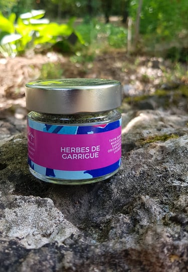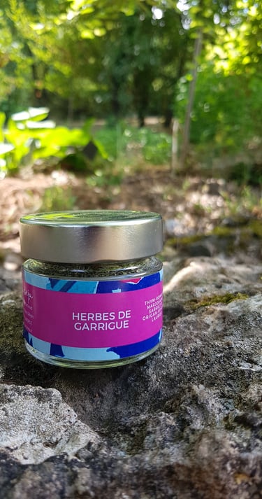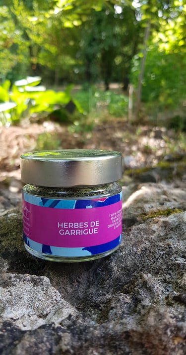 Sept plantes aromatiques locales s'unissent pour le bonheur des gourmets. Ce mélange d'herbes assaisonnera vos ratatouilles, coulis de tomates, tartines de fromage de chèvre frais ou chaud, agrémentera vos marinades pour les barbecues …