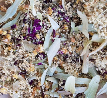 Une tisane précieuse uniquement composée de fleurs : sureau, rose, tilleul, camomille matricaire. Un vrai plaisir pour les sens ! Elle peut également se préparer en tisane glacée avec un zest de jus de citron, qui s'alliera à la saveur douce et suave des fleurs sureau.